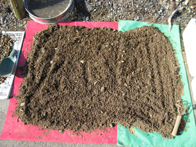 2回目のフルイで、水はけ悪さの原因になる細かい砂をとります。