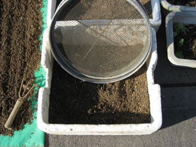 で、ふるった土に栄養のある土(腐葉土とか赤玉とか)を入れます。