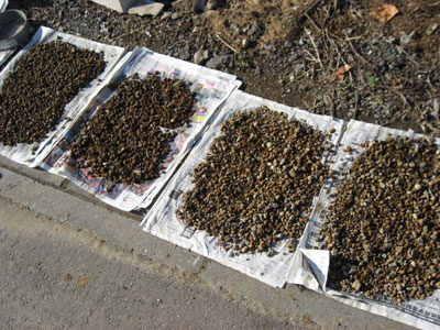 ふるった石もまた使うので、水でおおまか洗って乾かします。