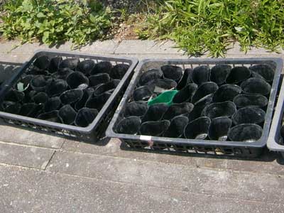 ↑は、黒ポット(ビニール鉢)を、洗って干している最中。
