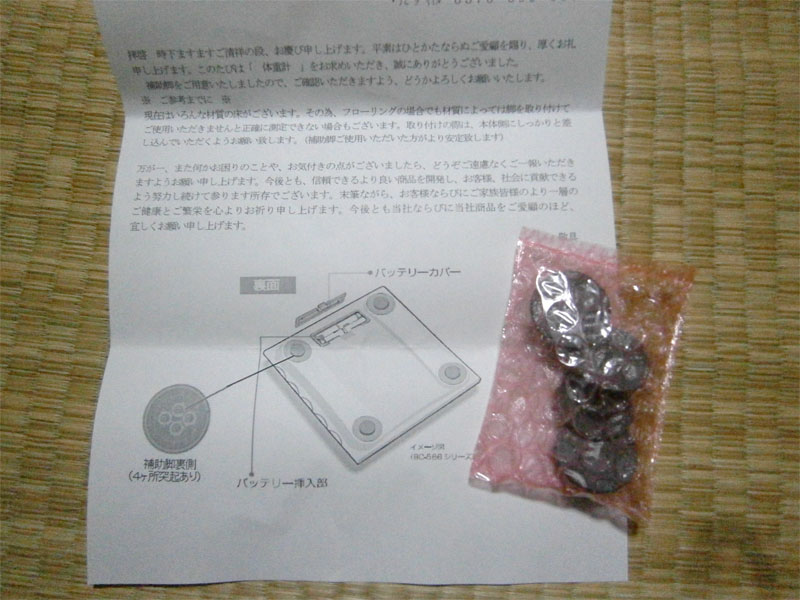 最新の体組成計は最初から補助脚がオプションでついているものもあり、こちらは付属していないし説明書にも書いていないので心配だったのですが、OKでした♪