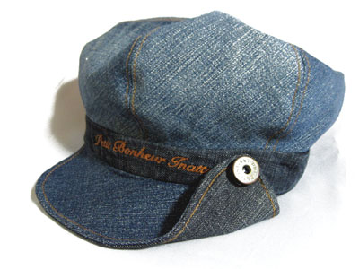 ↑は、ヒザが破れて履けなくなったジーンズを再利用して作ったキャスケット。