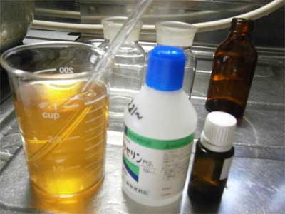 これが終わったら、水とグリセリンとエッセンシャルオイルを入れて完成!