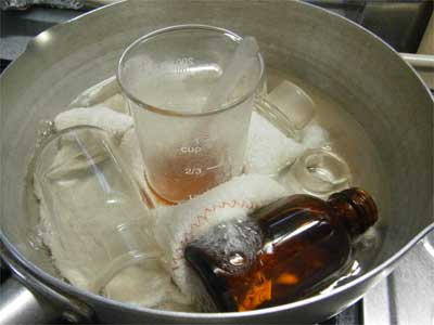 まずはアルコールをとばす為、湯せんにかけます。
